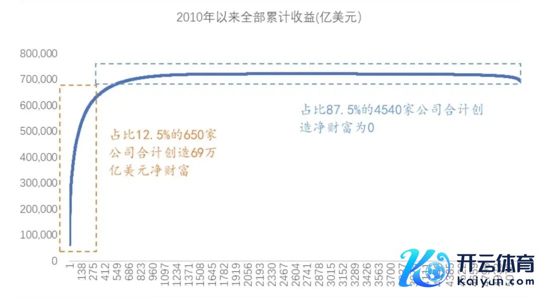 数据标明,2010年于今好意思股占比12.5%的650家公司总共创造约69万亿好意思元净钞票(股价高潮收益+分成),占比87.5%的4540家公司总共创造净钞票为0。