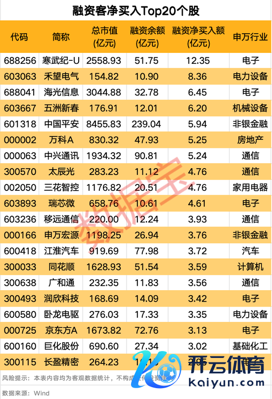 个股中,寒武纪-U、禾望电气、海光信息、五洲新春赢得融资客逆势加仓,融资净买入额顺序为12.35亿元、8.36亿元、6.45亿元、6.2亿元,排行前四。其中,寒武纪-U、海光信息为半导体产业个股,五洲新春则具备东说念主形机器东说念主意见。此外,多只通讯设备股赢得融资资金净买入,移远通讯、广和通、中兴通讯、太辰光均榜上闻明。