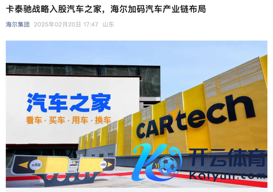 2月20日,海尔集团官方微信公众号提到,中国祯祥将延续行为汽车之家的主要鼓吹之一,通过云辰成本转折执有在汽车之家的剩余股份。交游完成后,汽车之家将行为海尔汽车产业生态的关键重要,在海尔和中国祯祥的共同支执下延续安定发展现存业务。