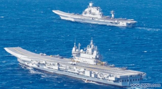 "超日王"号(右)构成的双航母编队