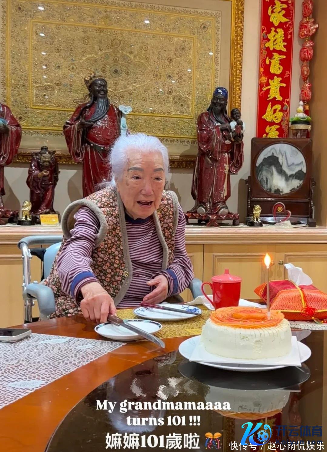今天(1月4日),谢玲玲在酬酢账号上晒出为余宝珠庆生的视频。视频自满,余宝珠一头银发,娇媚又有明后,身穿红色上衣,外搭玄色马甲,坐在轮椅上,揣度腿脚可能有些未便了。看配景,余宝珠是在豪宅里庆生的。