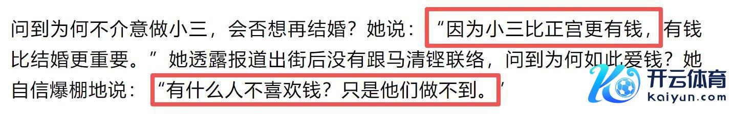 径直抛出了那套令东谈主惊叹的敛财论,无用问我爱不爱,我只认钱。