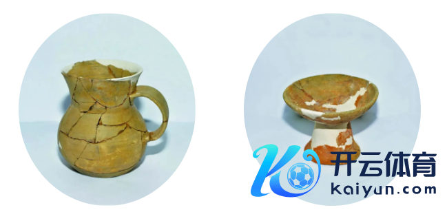 旸里店行状出土的陶罐(左)和陶豆(右)