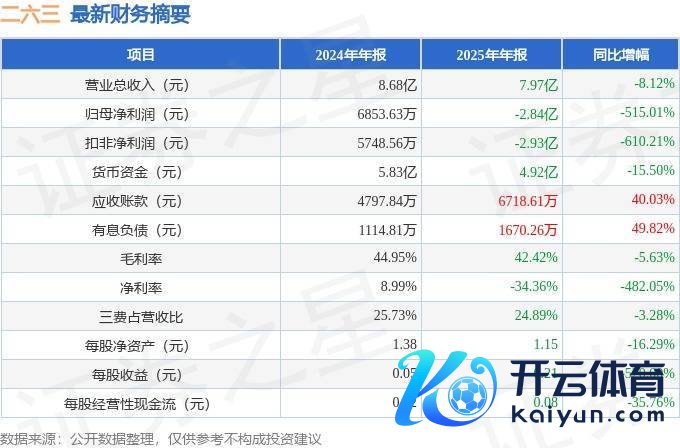 据证券之星公开数据整理,近期二六三(002467)发布2025年年报。凭据财报清晰,二六三净利润同比下跌515.01%。收敛本汇报期末,公司营业总收入7.97亿元,同比下跌8.12%,归母净利润-2.84亿元,同比下跌515.01%。按单季度数据看,第四季度营业总收入2.07亿元,同比上涨4.6%,第四季度归母净利润-3.6亿元,同比下跌9028.27%。